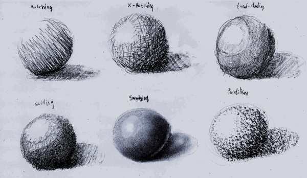 ![Штриховка шара карандашом]()