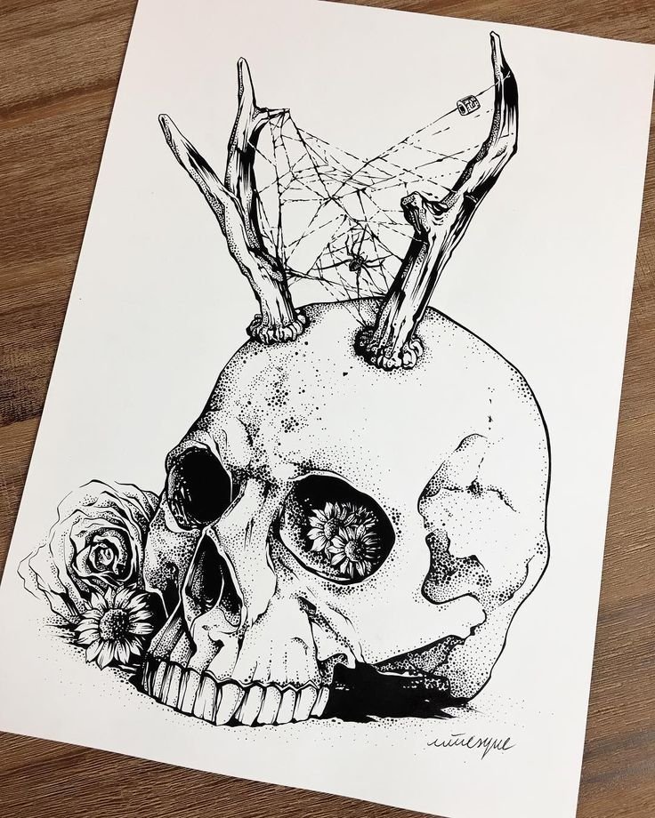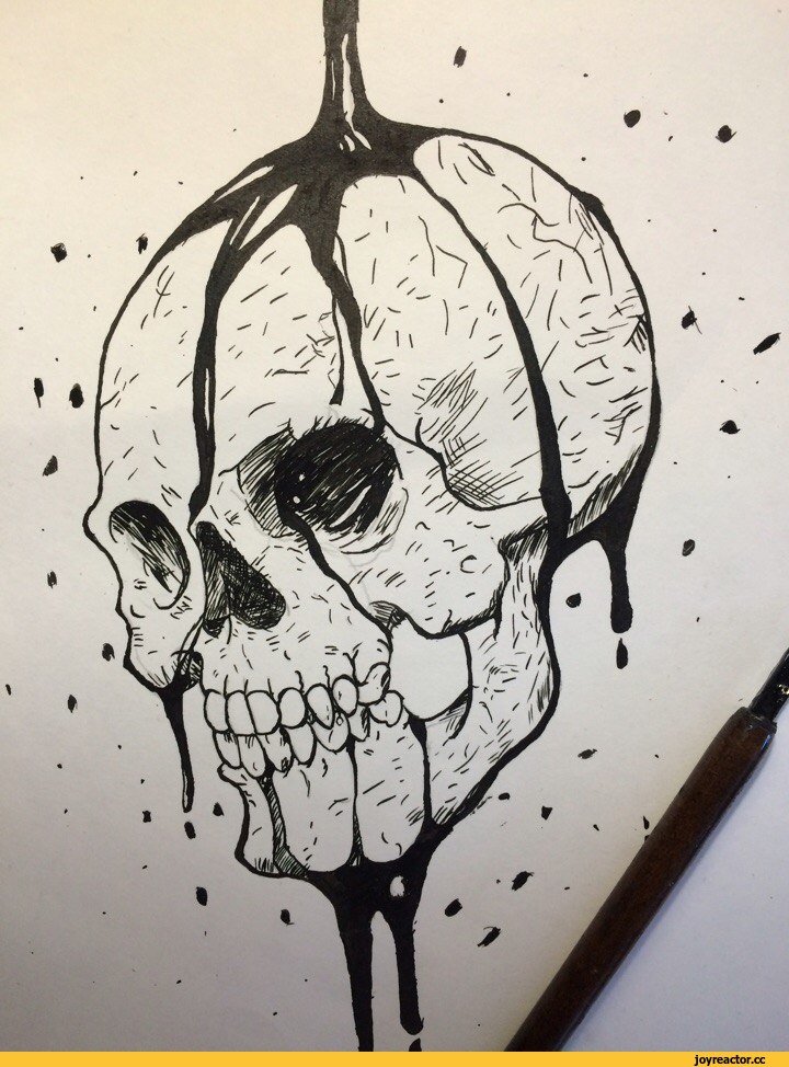 ![Рисунки чёрной ручкой череп]()