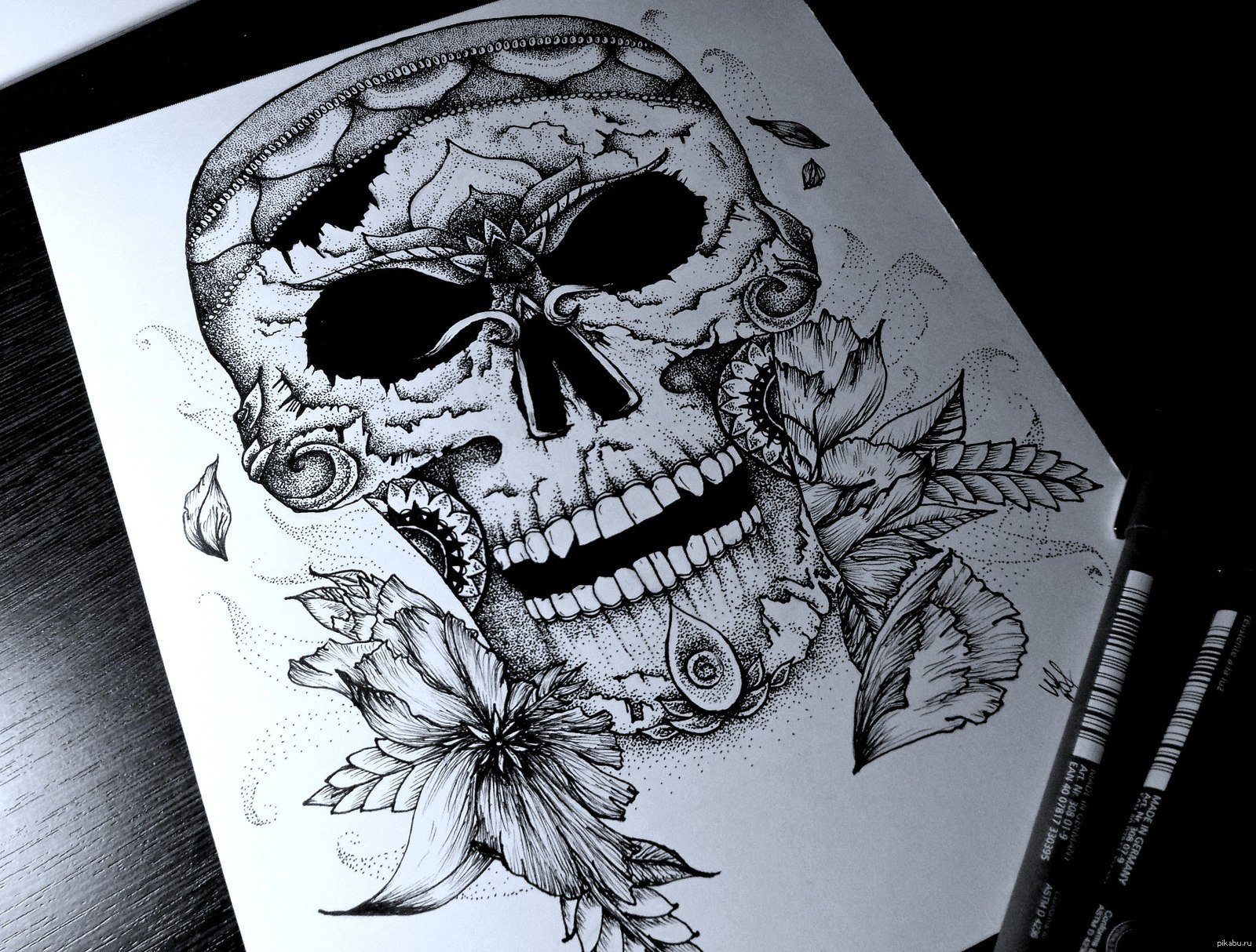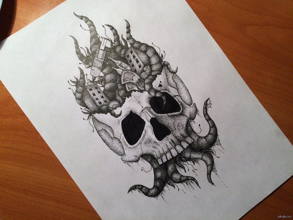 Рисунки чёрной ручкой череп