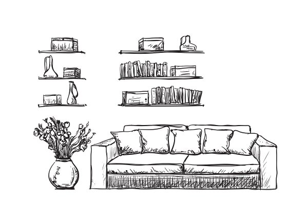 ![Эскиз комнаты с диваном]()