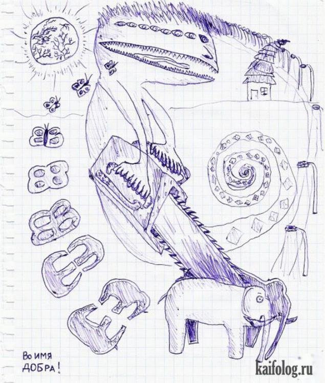 ![Рисунки ручкой в тетради]()