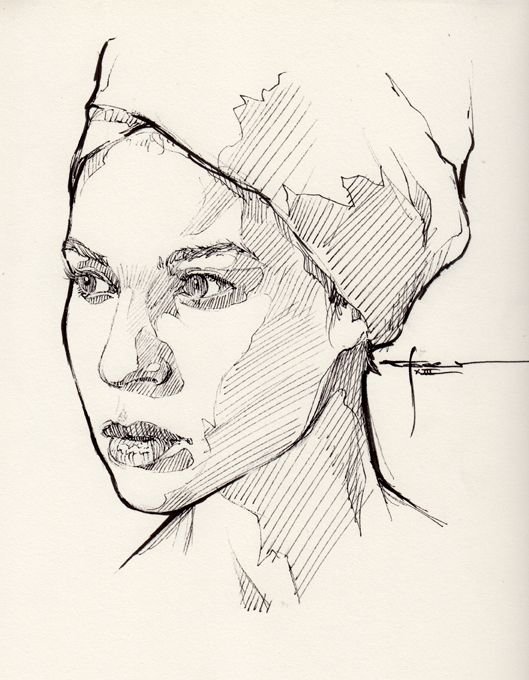 Скетч портрет линером