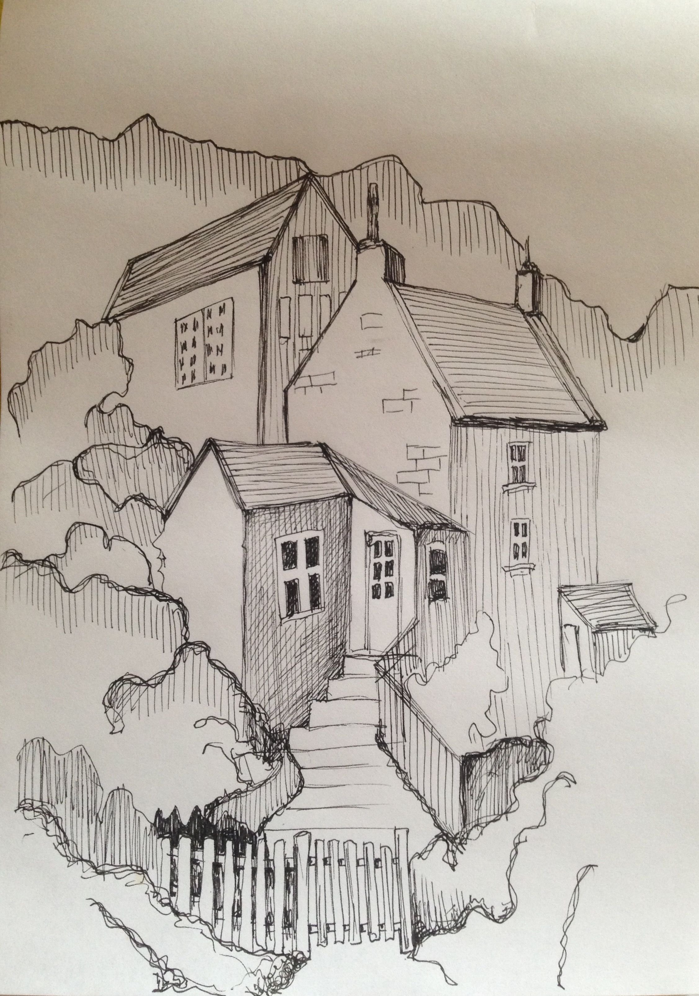 Скетчи домов ручкой