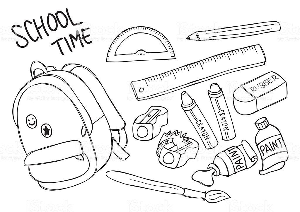 ![Школьные принадлежности карандашом]()