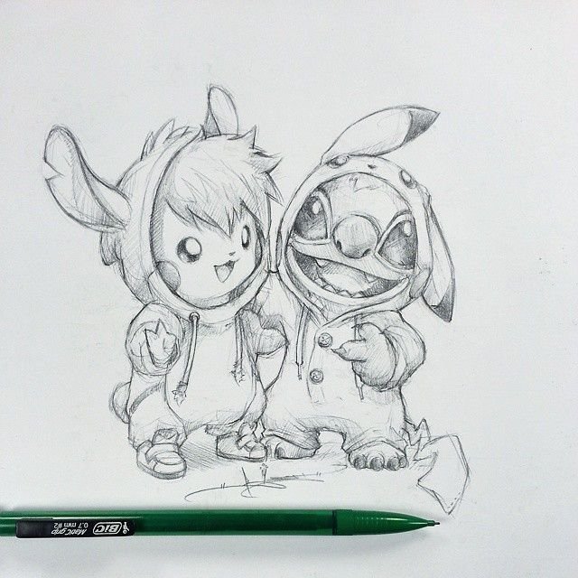 Стич рисунок карандашом для срисовки