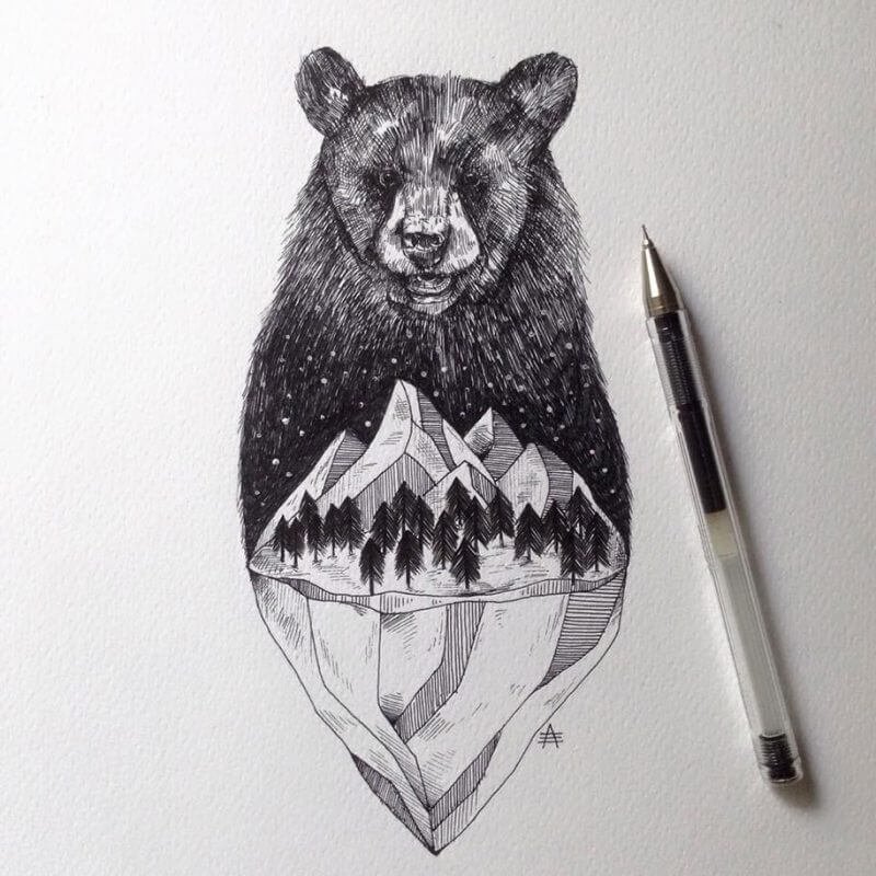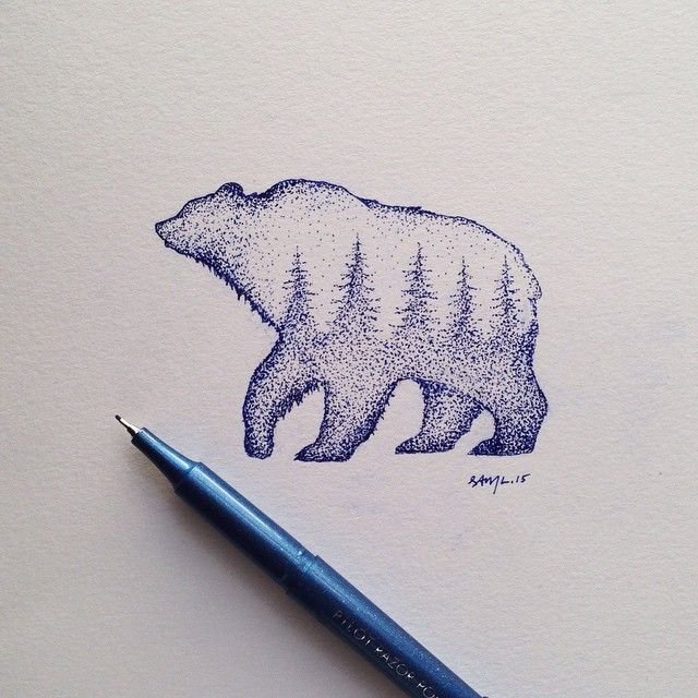 ![Медведь черной ручкой]()