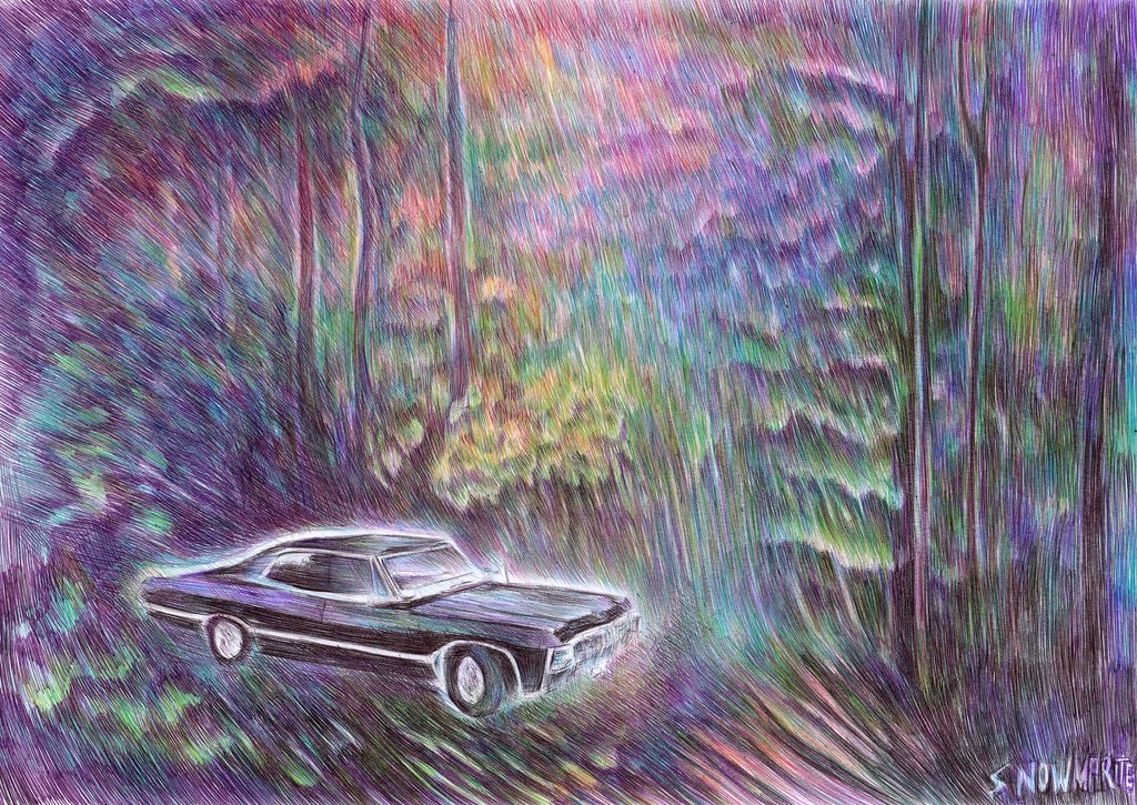 ![Пейзаж цветными ручками]()