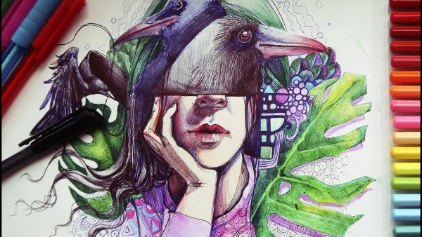 ![Рисунки маркерами для скетчинга]()