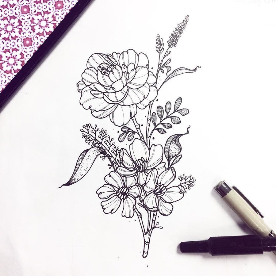 Цветы ручка эскиз