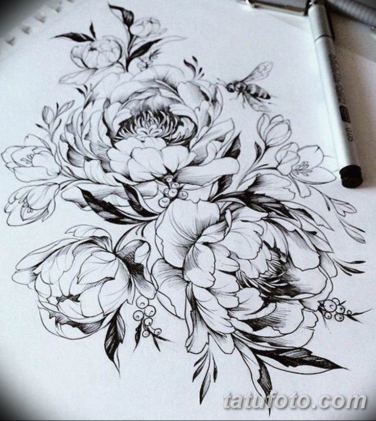 Эскиз тату пионы
