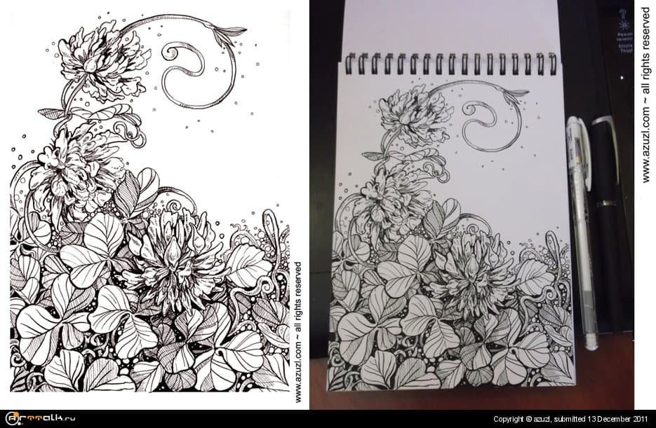 ![Цветы черной ручкой]()