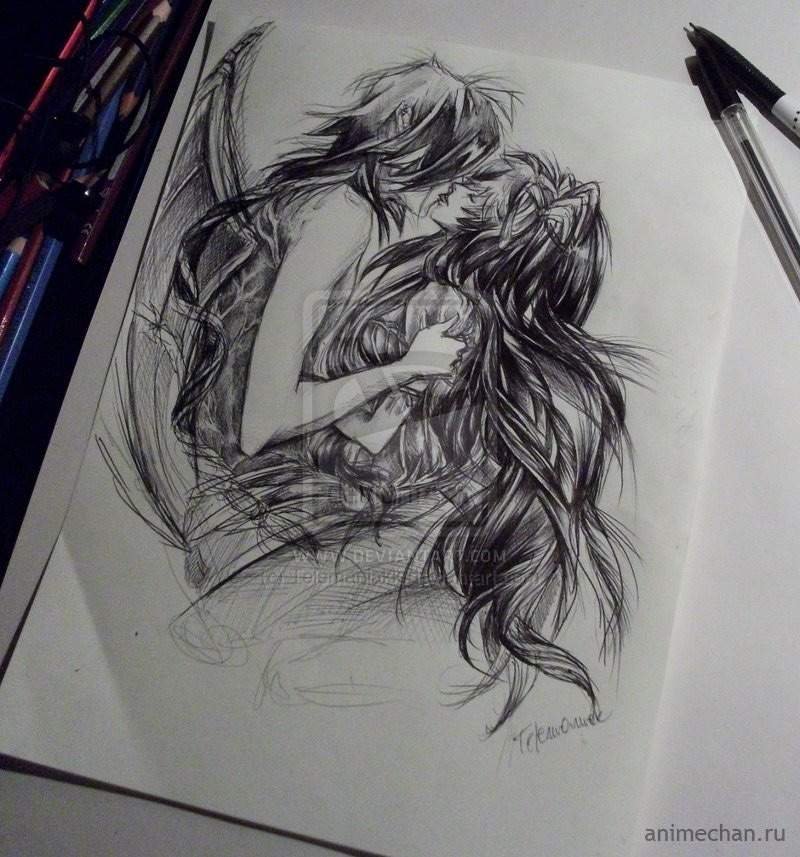 ![Поцелуй скетч]()
