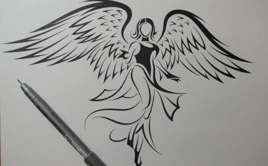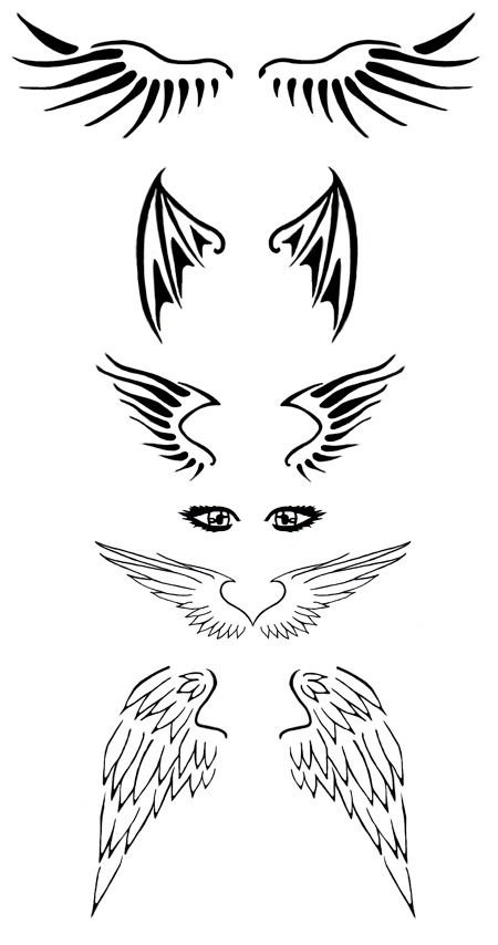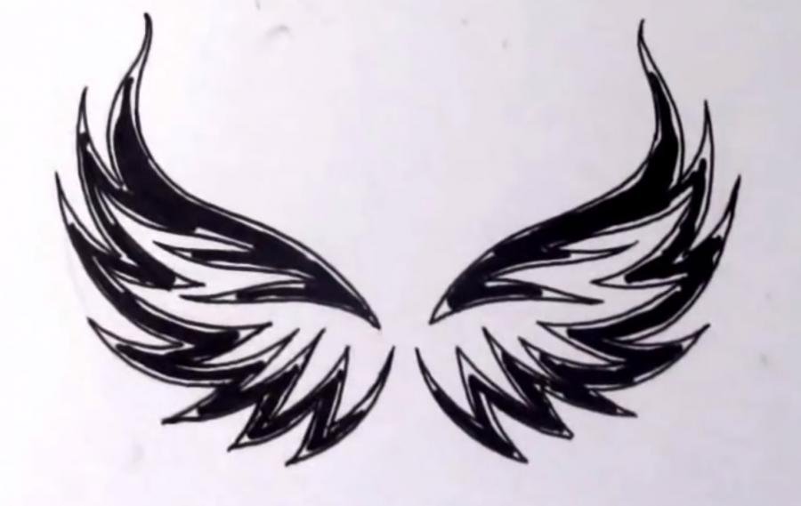 Рисунок тату пошагово Крылья