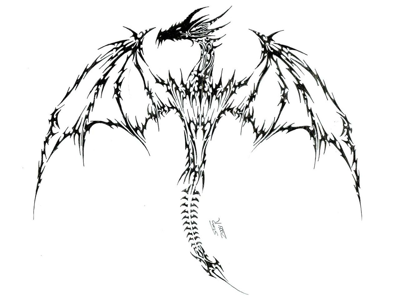 Крылья демона карандашом