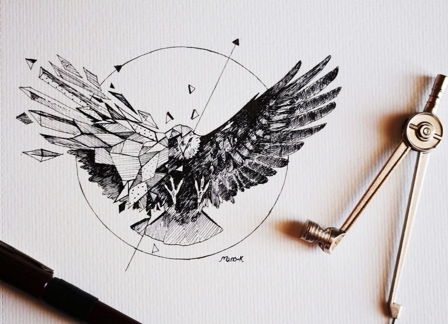 ![Эскиз тату Орел геометрия]()