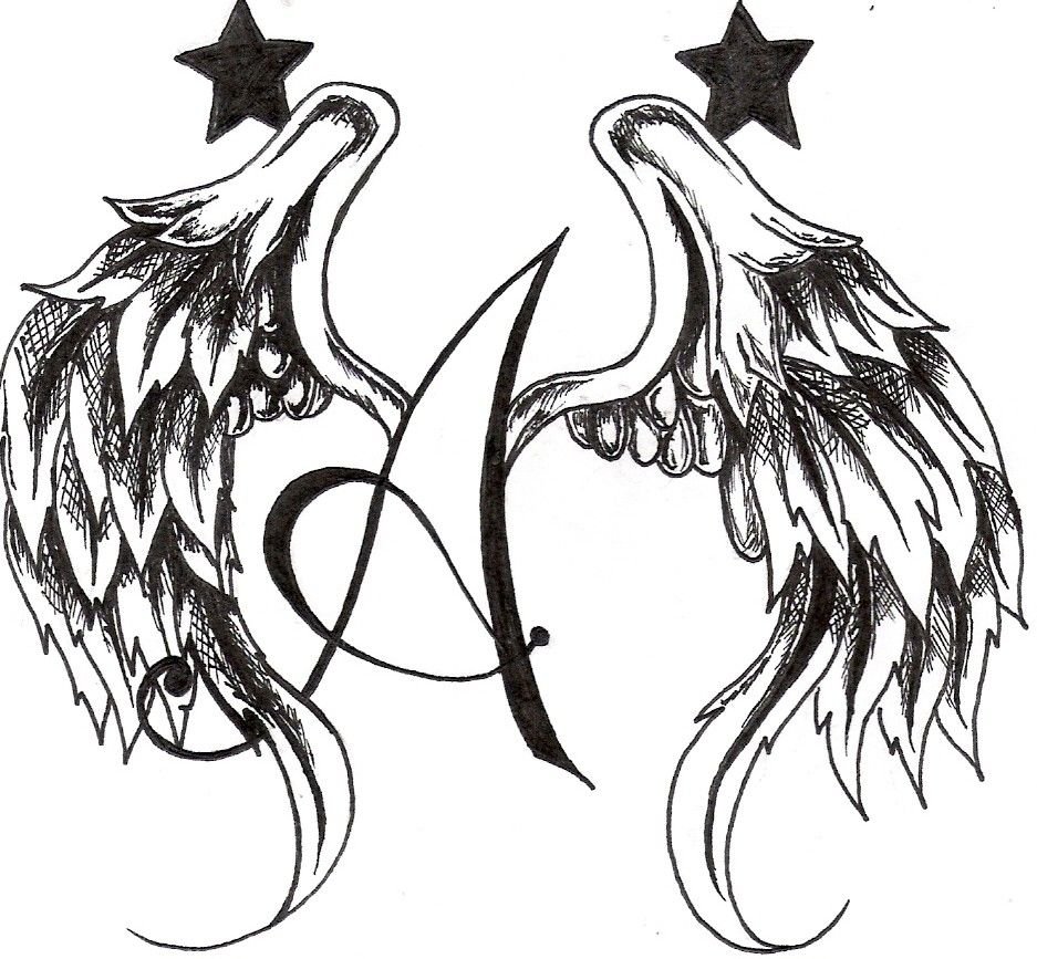 ![Крылья тату эскиз]()