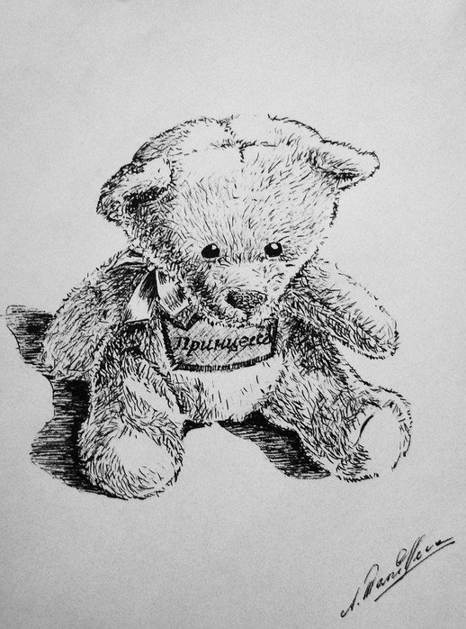 ![Мишка Тедди рисунок ручкой]()