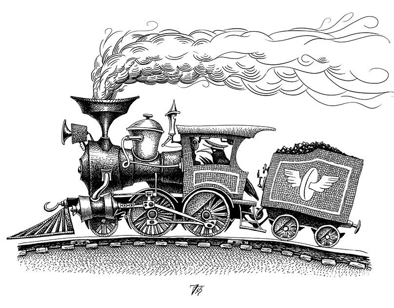 Паровоз гравюра