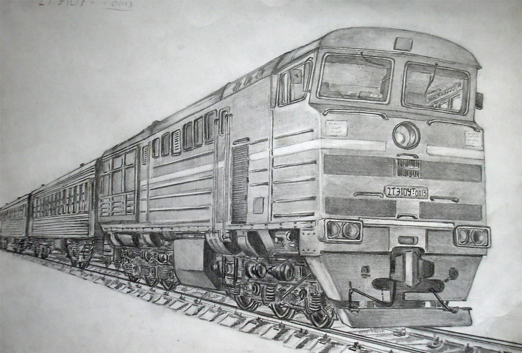 ![Поезд арт карандашом]()