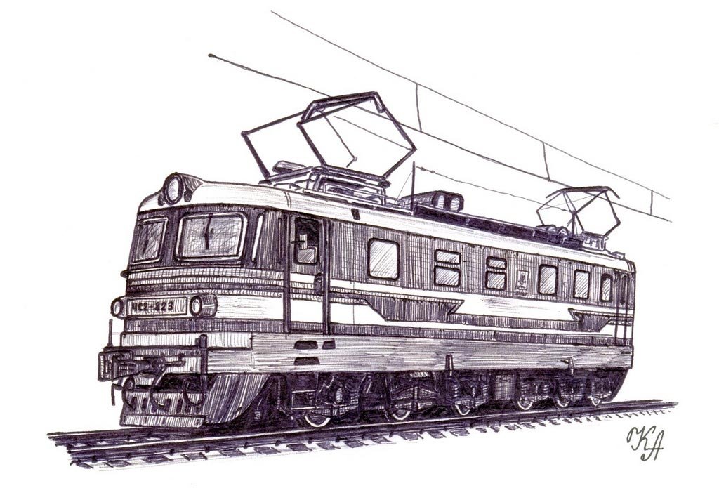 ![Электровоз карандашом]()
