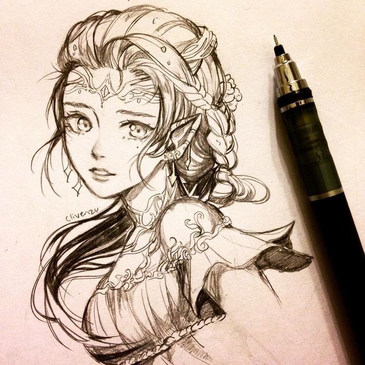 ![Девушка Эльф карандашом]()
