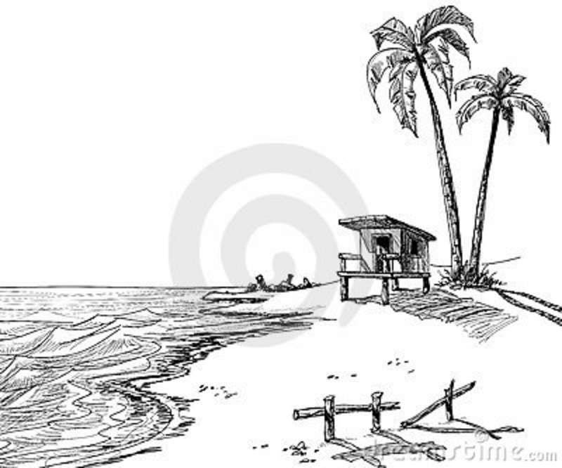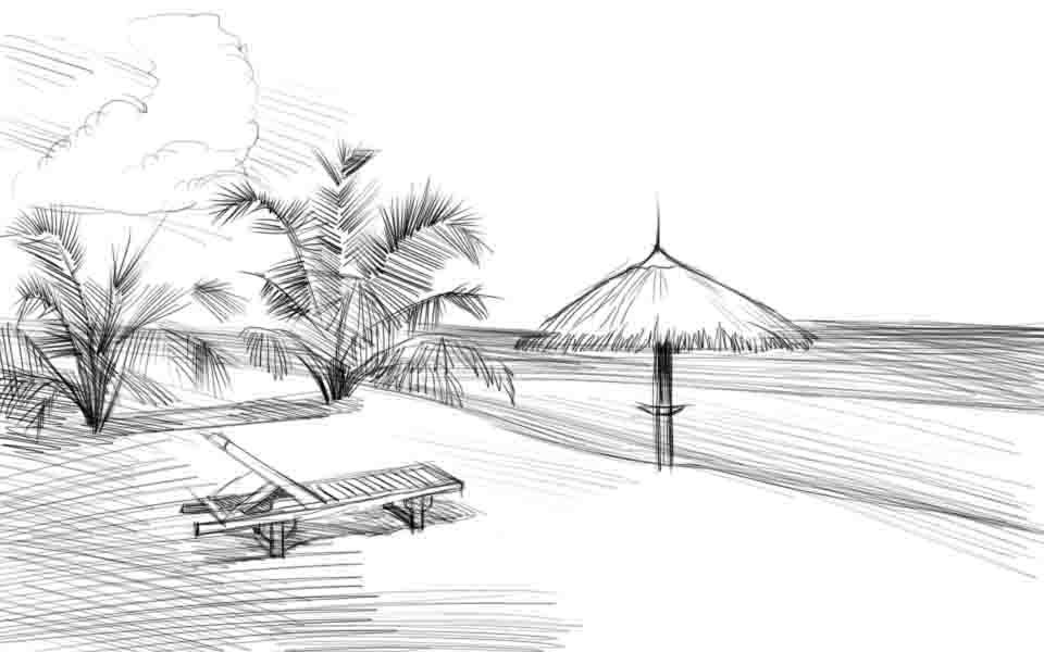 Пляж нарисовать карандашом