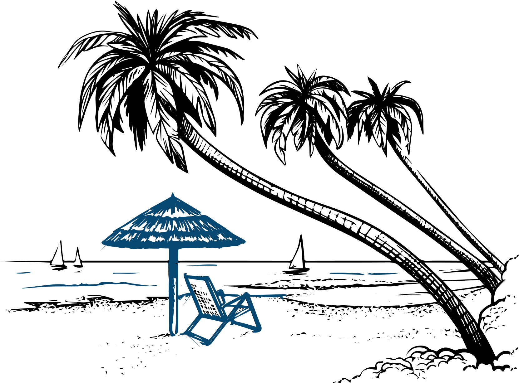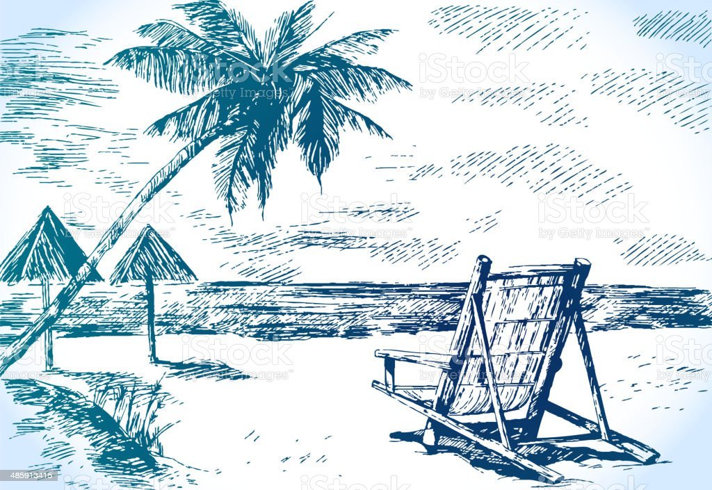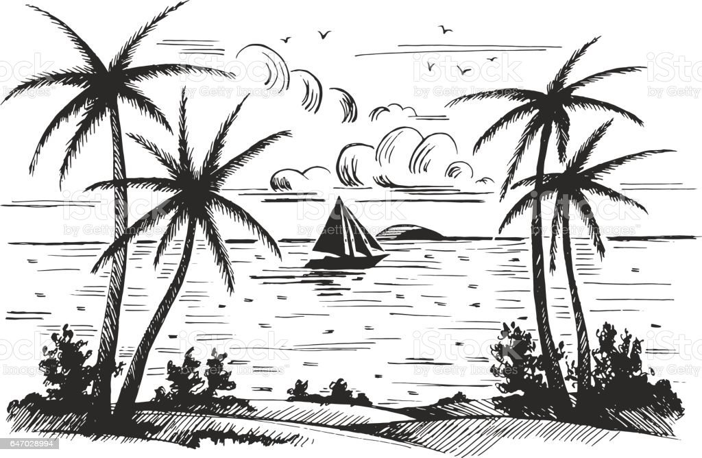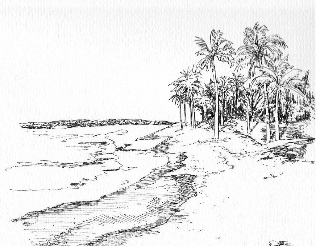 Пляж с пальмами скетчи