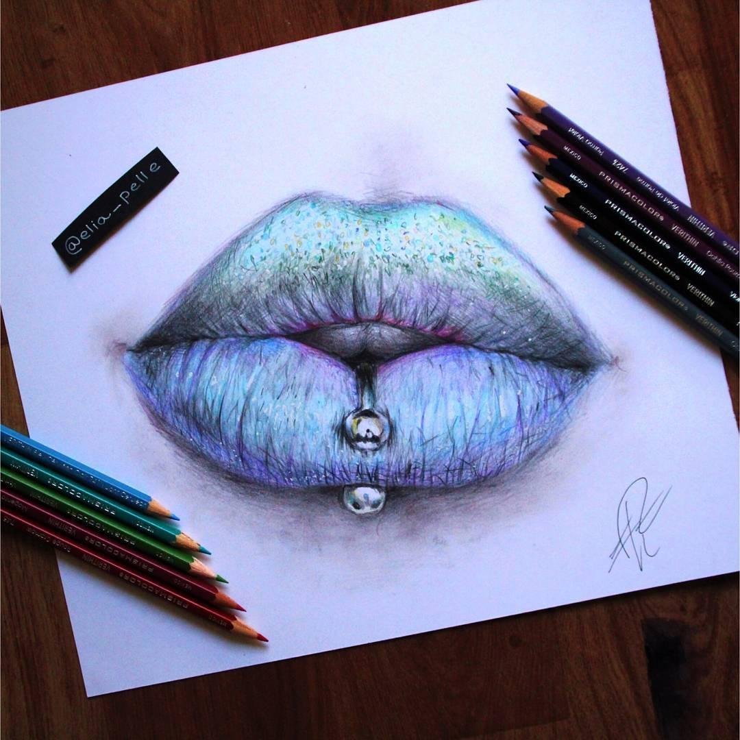 ![Губы рисунок цветными карандашами]()