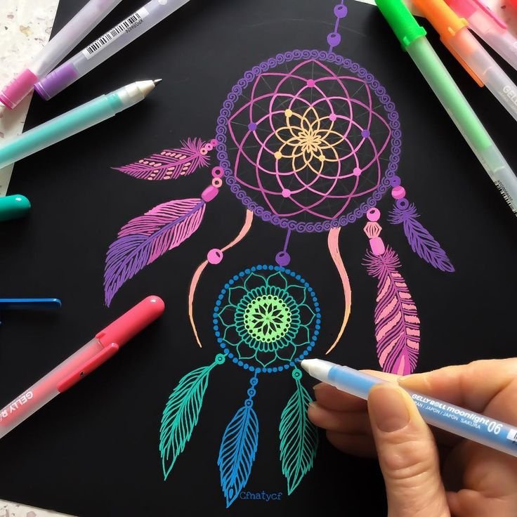 ![Рисунки гелевыми ручками цветными]()