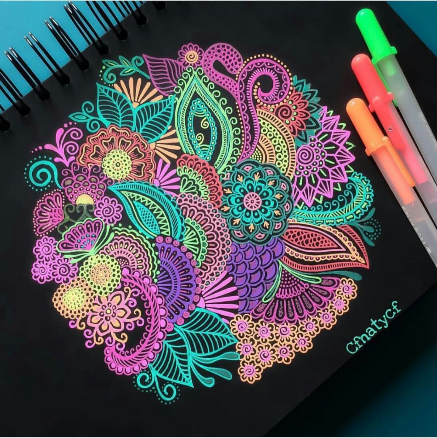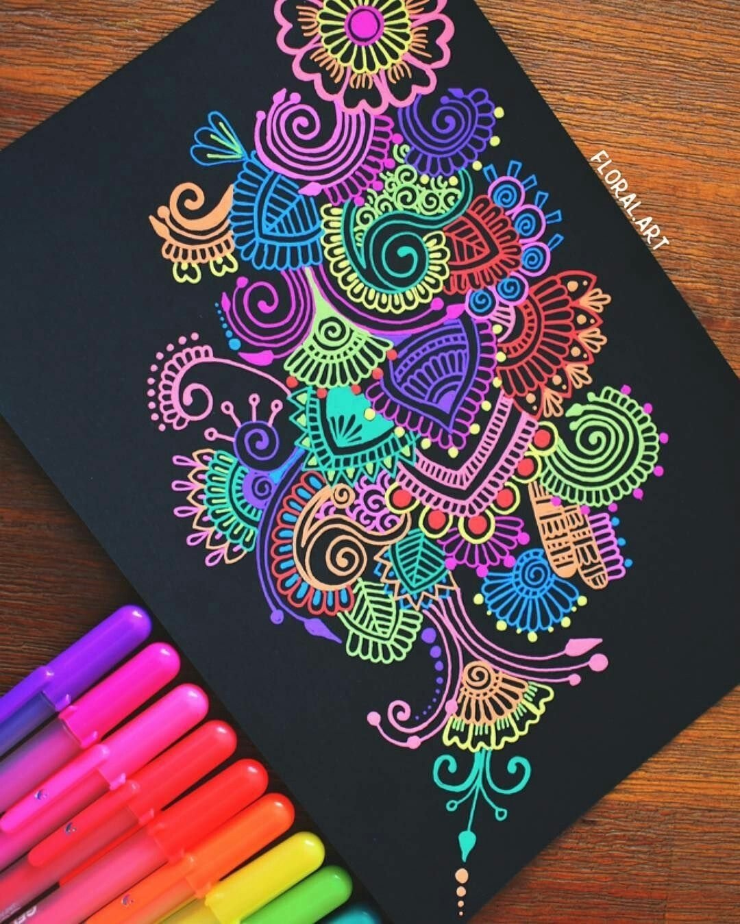 ![Узоры цветными гелевыми ручками]()