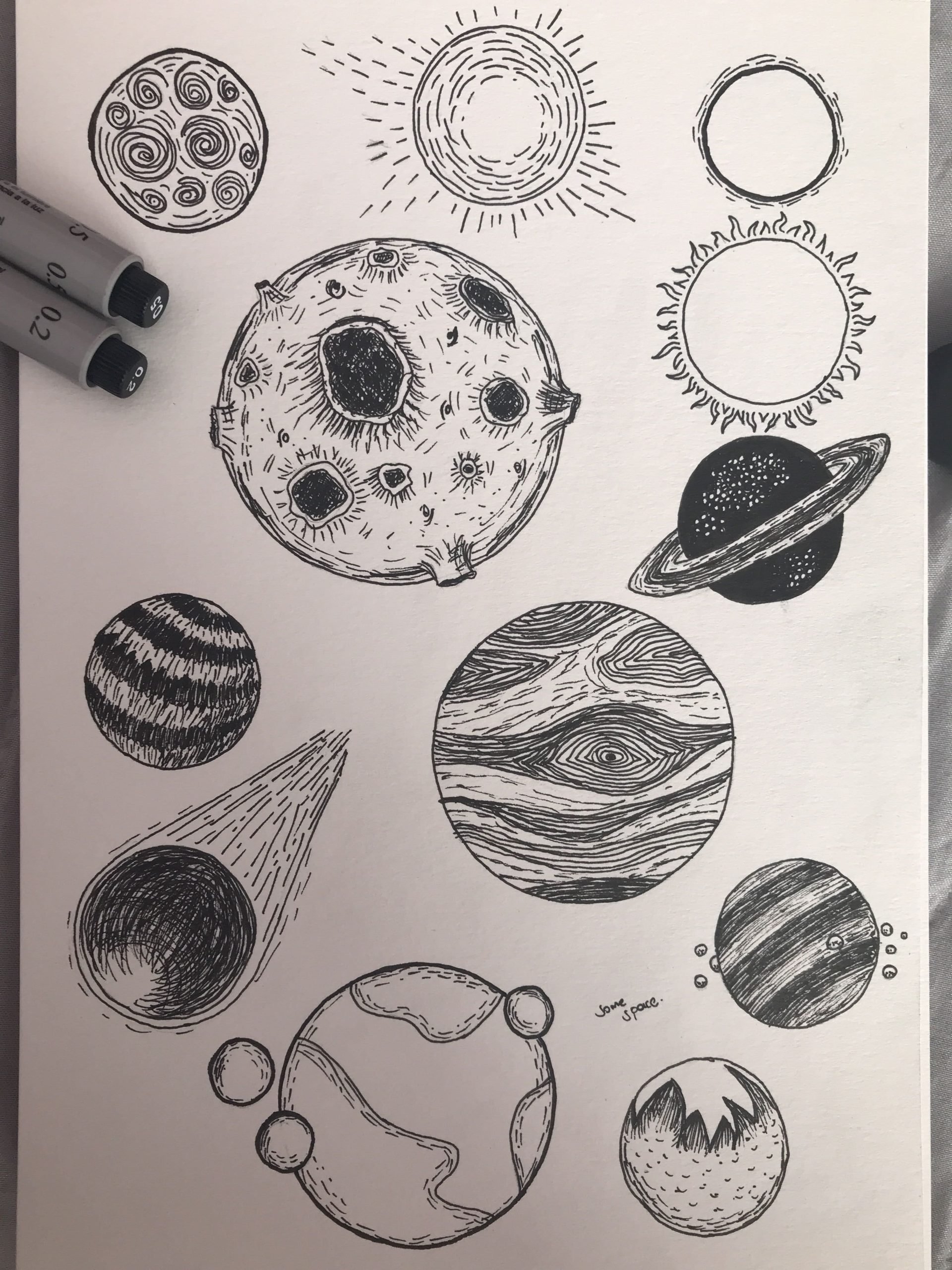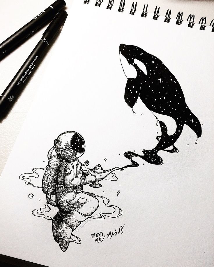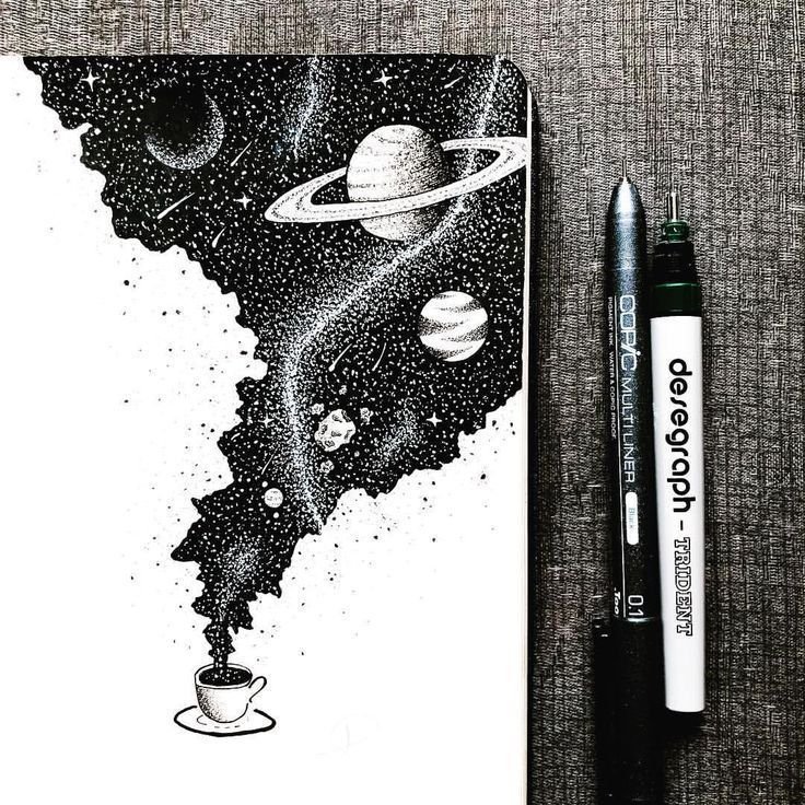 ![Рисунки в скетчбуке черной ручкой легкие]()