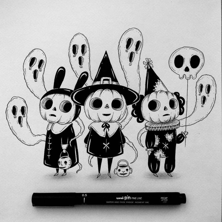 Рисунки черной ручкой на тему Хэллоуина - это уникальное и стильное искусство, которое позволяет создать загадочную и мрачную атмосферу. Такие рисунки отлично подходят для декорирования праздничных открыток, приглашений, постеров или просто для самовыражения и творчества. Использование черной ручки добавляет особый эффект и глубину рисункам, делая их еще более запоминающимися и привлекательными. Будь то изображение страшных лиц, скелетов, ведьм, черепов или других символов Хэллоуина, рисунки черной ручкой позволят вам создать атмосферу праздника, наполненного загадками и мистикой.