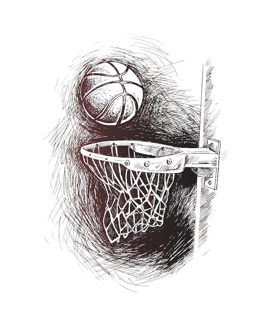 ![Рисунки баскетбола черной ручкой]()