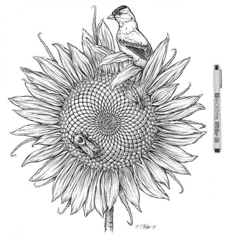 ![Подсолнух зарисовка]()