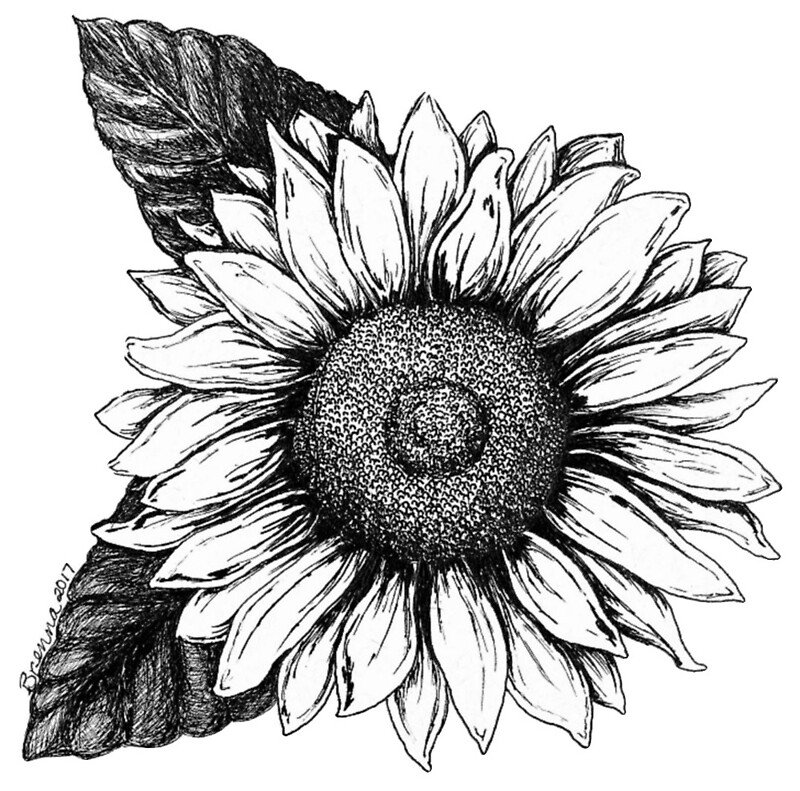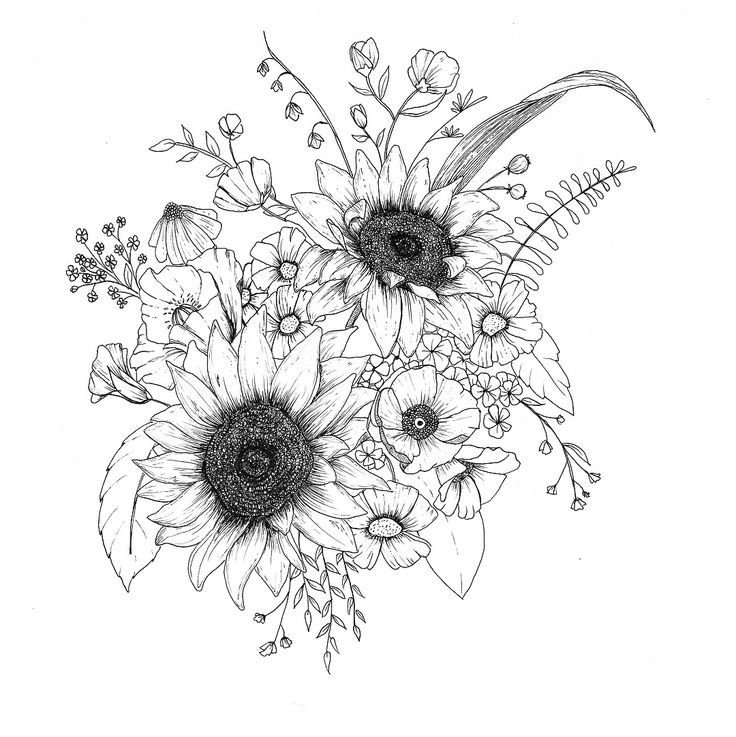 ![Подсолнух черно белый]()
