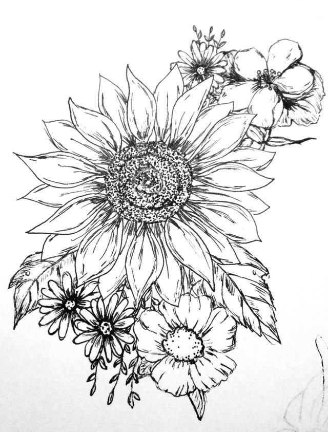 ![Подсолнух скетч]()