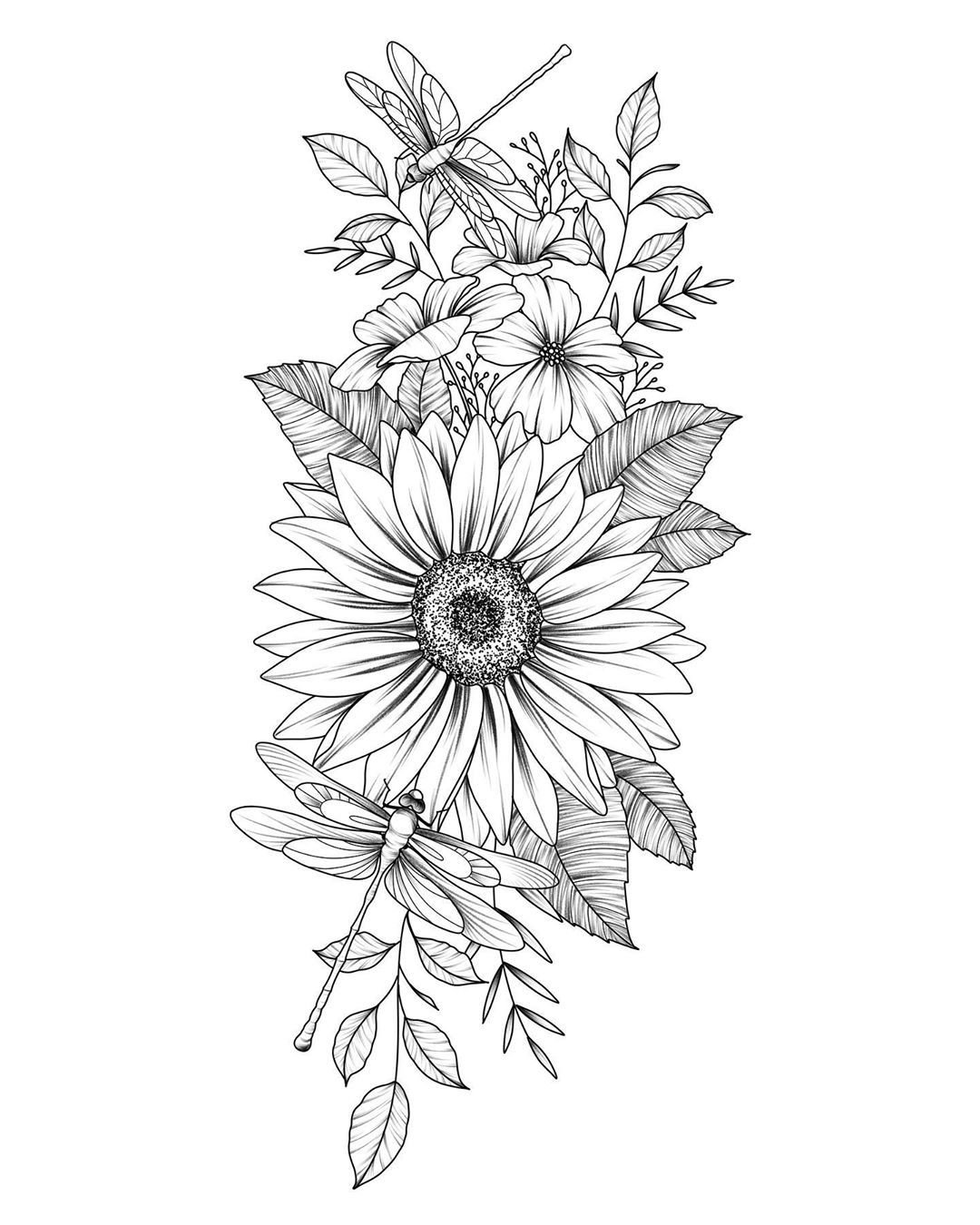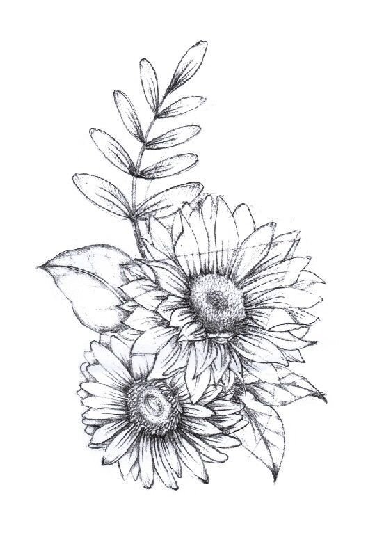 ![Татуировка подсолнух эскиз]()