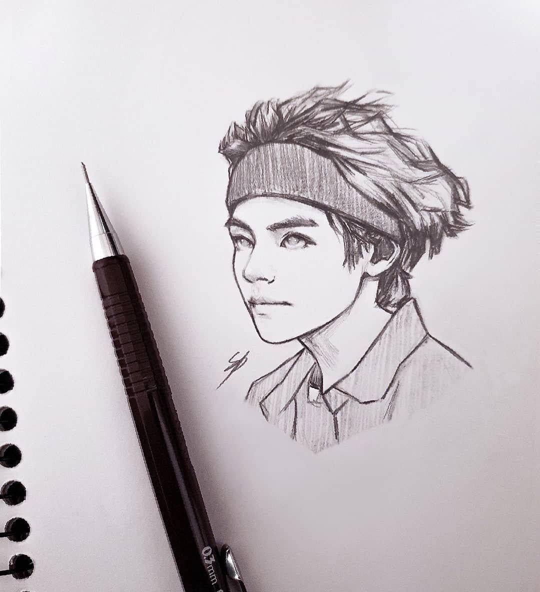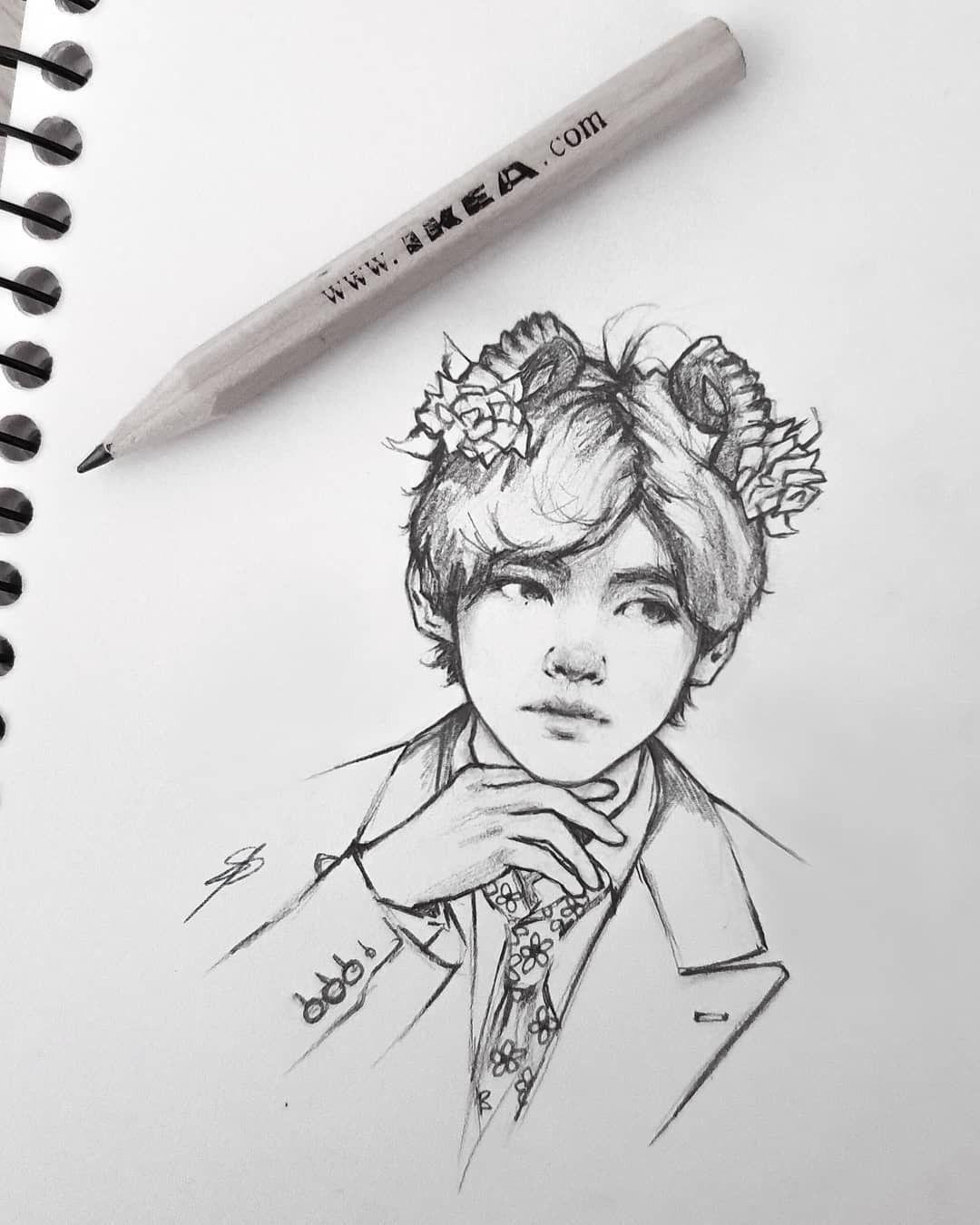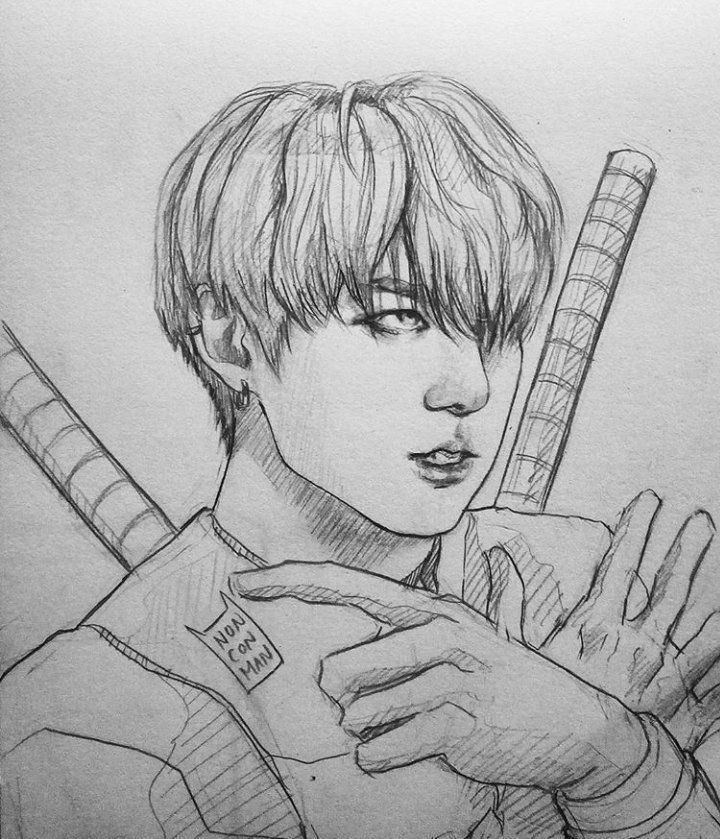 БТС арт карандашом тэхён
