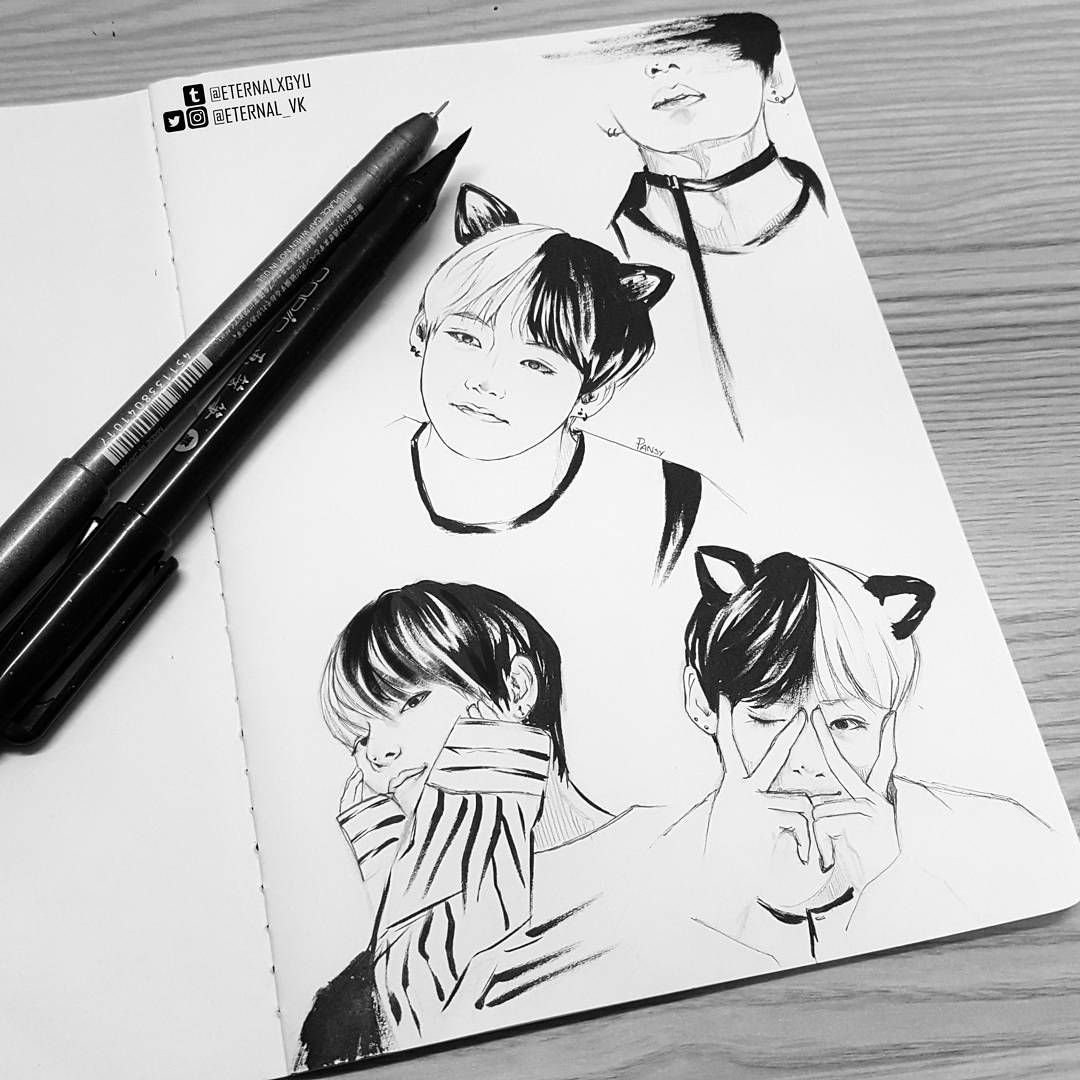 ![BTS тэхён скетчи]()