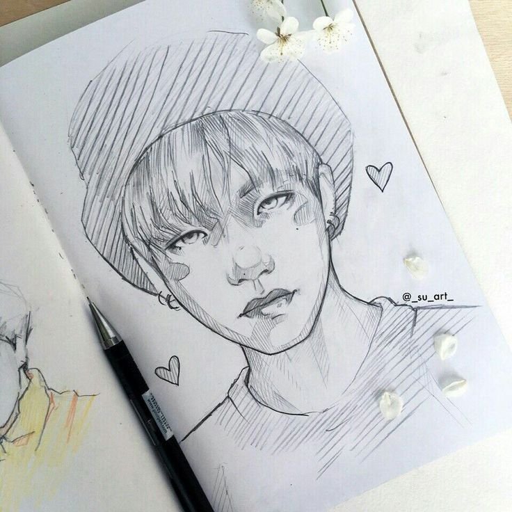 ![БТС скетчбук карандашом]()