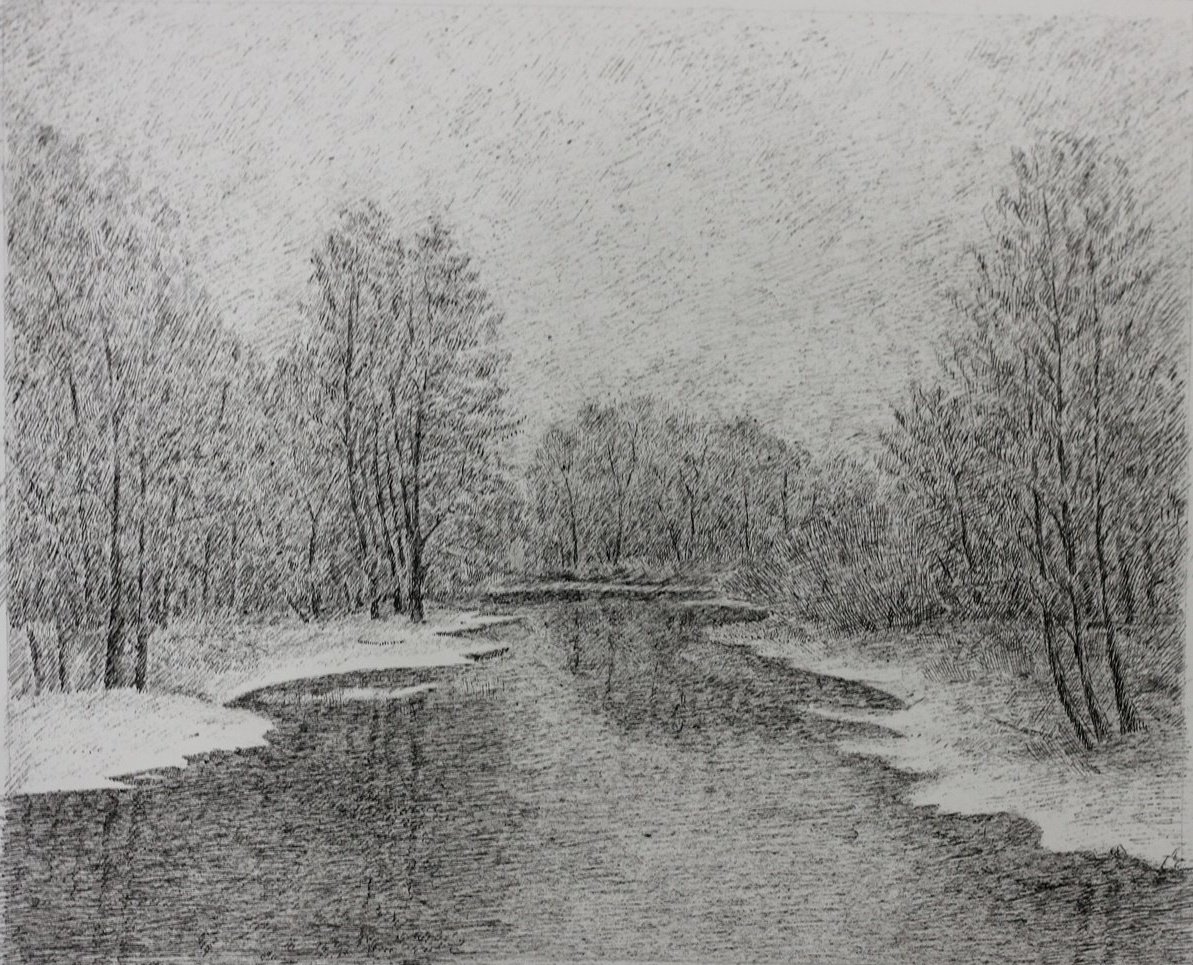 Пруд карандашом