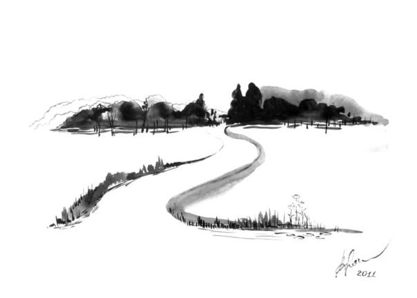 ![Пейзаж тушью]()