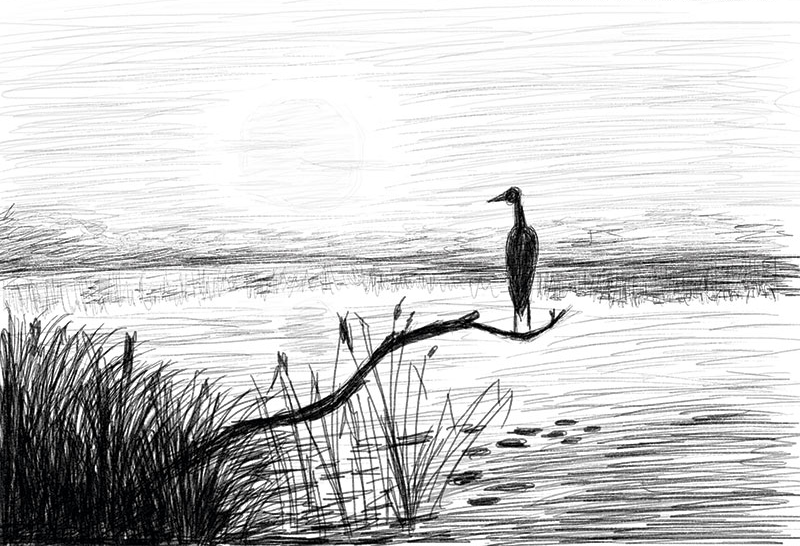 Лесное озеро карандашом