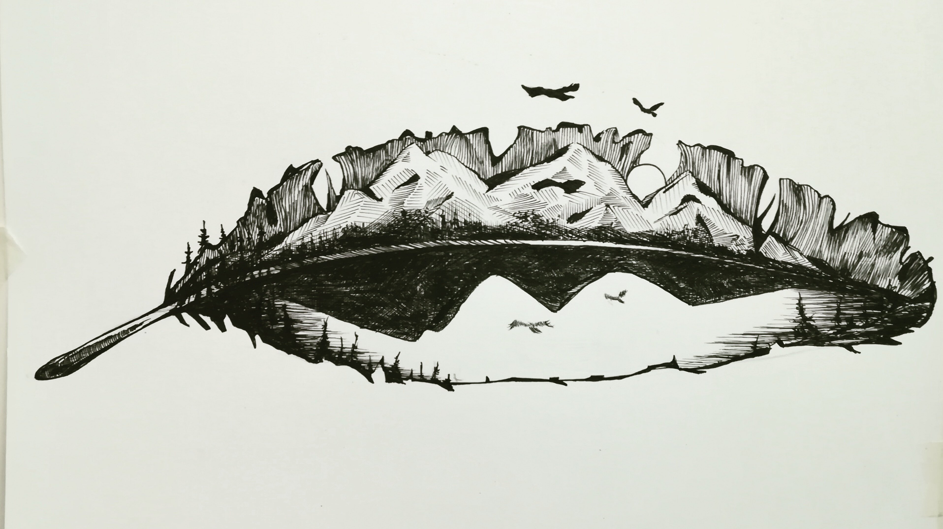 ![Пейзаж черной ручкой]()