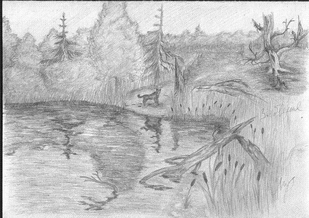 ![Лесное озеро карандашом]()
