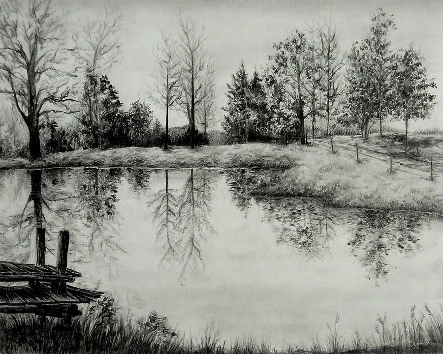 ![Пруд рисунок карандашом]()