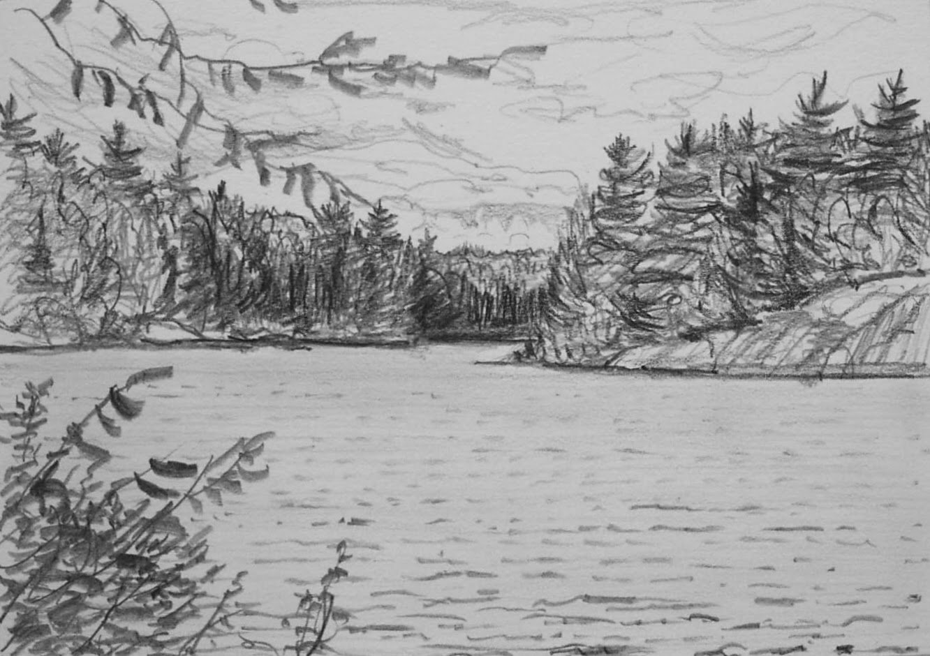 Водный пейзаж карандашом