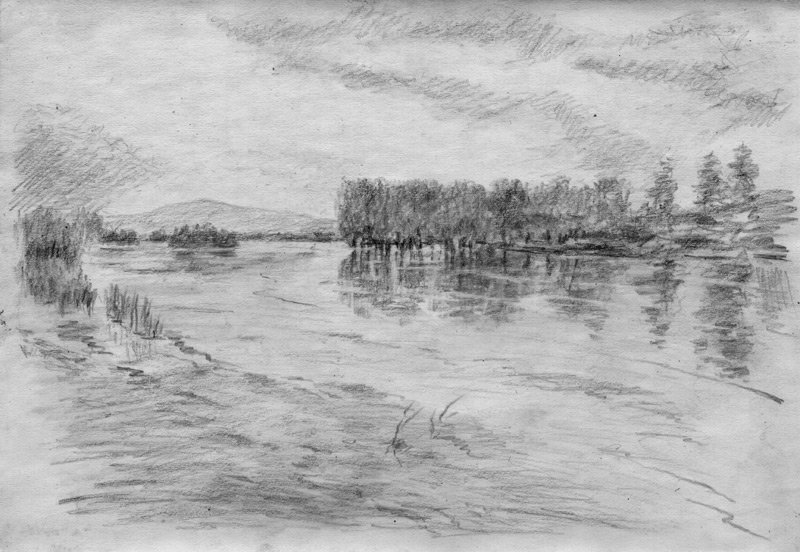 ![Водный пейзаж карандашом]()