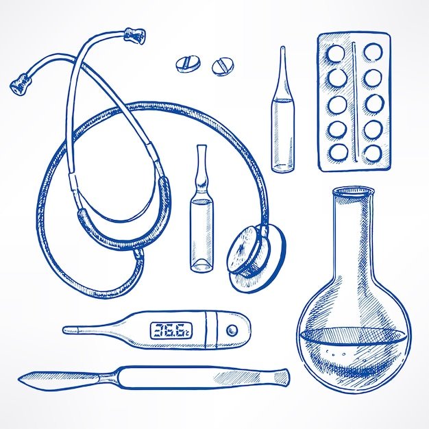 ![Медицинские инструменты карандашом]()