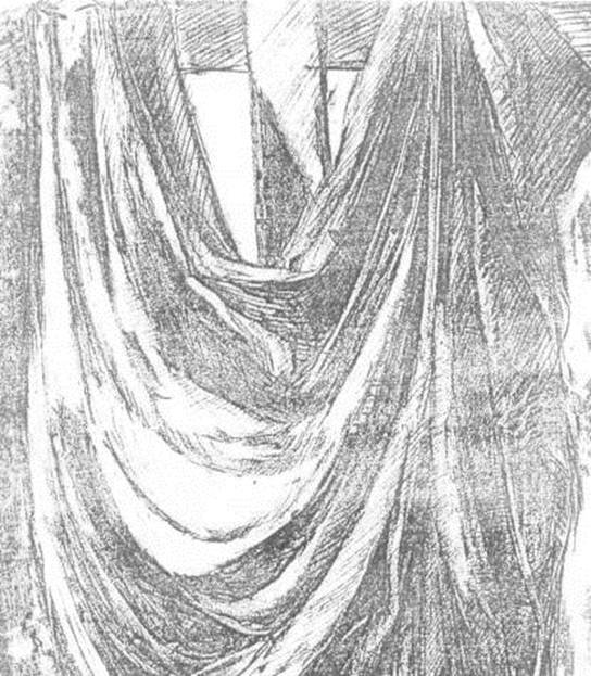 ![Линейно-конструктивный рисунок драпировки]()